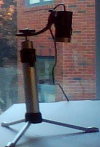 When it first came out, I picked up a 720P LifeCam. It was a good webcam until I saw a presentation by fellow MVP Rob Miles where he used the same model of camera as an overhead camera for demonstrating Windows Phone 7. The camera was held to a small camera tripod by duct tape and seem to have a life of it’s own. The concept was interesting and I took a look at my Lifecam to see if I could improve on the situation. I found that I could flatten out the holder for the camera andclamp it to a tripod. This gave a considerable range of angle from horizontal to straight down. I simplified the clamping arrangement by drilling a hole in the flat part of the camera and used a nut to hold the camera on a pocket size tripod. Most tripods have a threaded bold designed to be screwed into the base of a camera. The fun was drilling through the steel plate hidden within the plastic. You will need to make sure that the camera support is held well before attempting to drill. Otherwise the drill bit will walk all over the place rather than cutting into the support.
