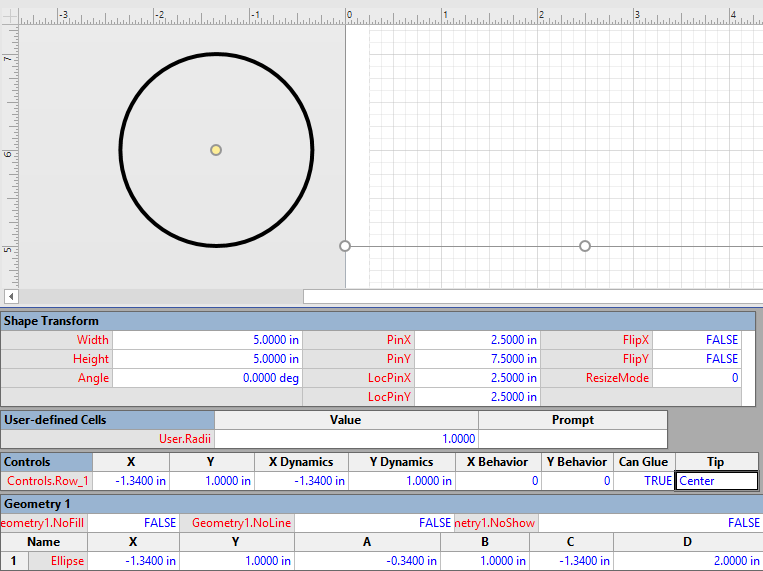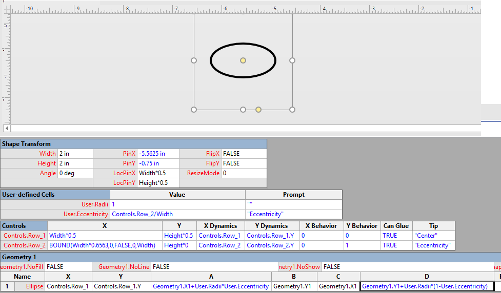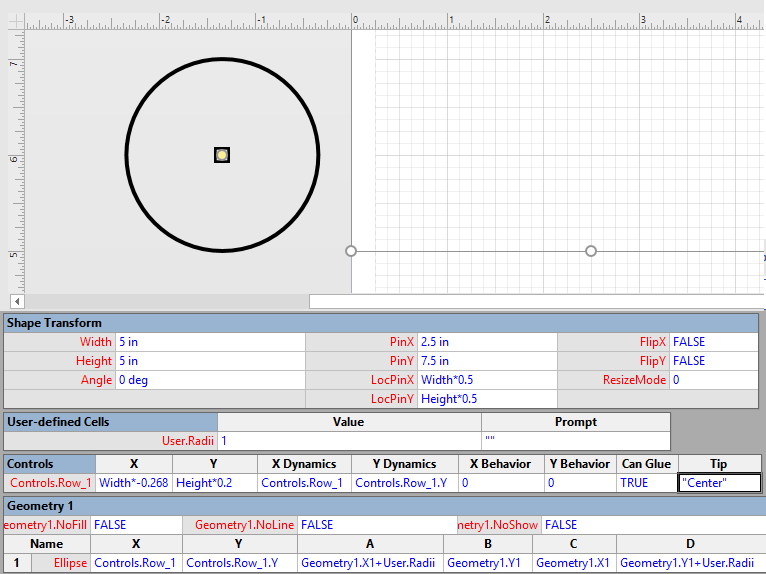 So, it is easy to create a circle shape and move it around the page, but what is needed to create a circle and move it within a shape? The problem is that the Ellipse row created has cells based on the Height and Width of the containing shape.