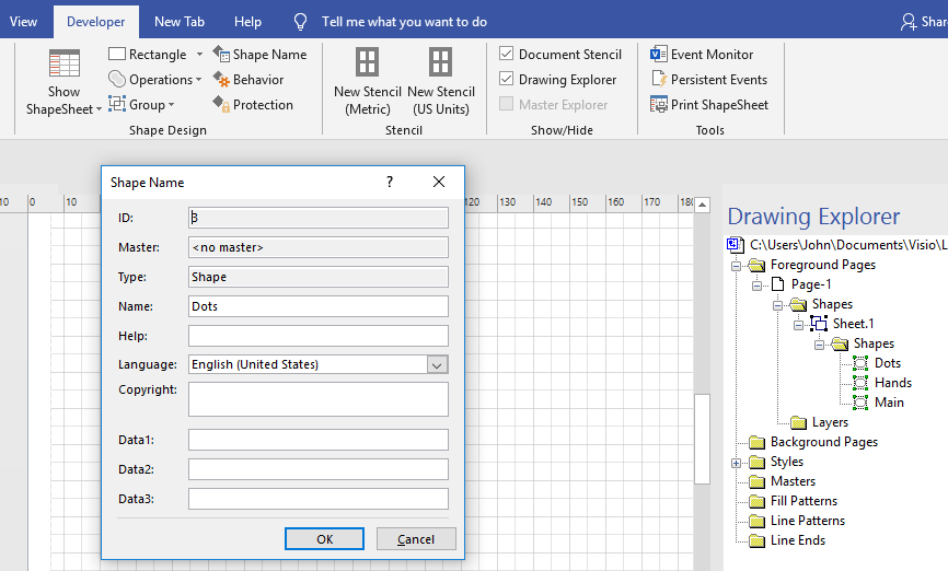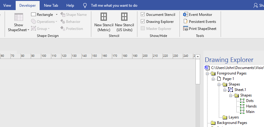 The standard name for a Visio shape is Sheet.nnnn and most people change it to a more logical name. You can do this with the sub shapes that make up a grouped shape. So, what happens if you decide to revert back to the original Sheet.nnn style? Select the subshape from the Drawing Explorer (Open the Drawing Explorer from the Developer menu).