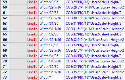 Another issue was that the Cosine shape was made of about 70 LineTo rows and I considered changing it to a NURB which would have curves rather than a series of straight lines, but that may be a bit of work converting that many rows, even with some VBA help.