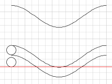 To make sure there is seperation, the bottom of the lower wire should be above the high point of the higher wire at some point, (the red line). Of course, this is an approximation and curves can be closer. This was just to work out the process rather than be as tight as possible,