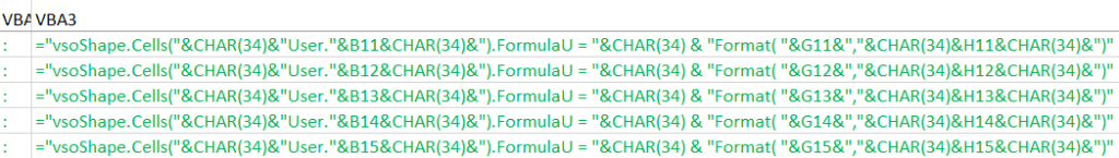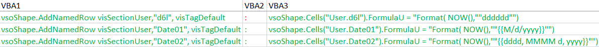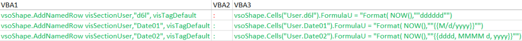 To be able to import into Visio, I need a column with a VBA statement to create the User cells.