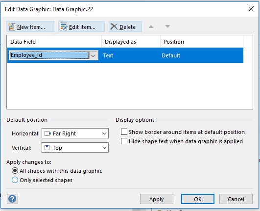 An alternate way is to use Data Graphics. These are shape embellishments that range from text to graphics that can appear around the shape. Select the shapes and chose Advanced Data Graphics from the Data tab…. and then Create New Data Graphics…