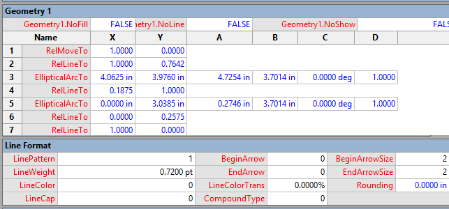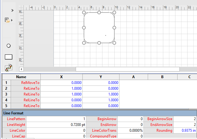 You will notice that the Geometry section is unchanged, but the Line Format section has a non zero value for Rounding.