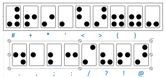 Finally, I added a group shape that was a collection of Braille cells. Each subshape referenced a character in the group shape’s text.