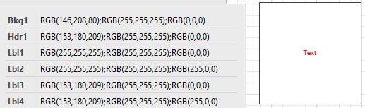 The Shape Data created is a three element list: Foreground colour, Background colour and Text colour.