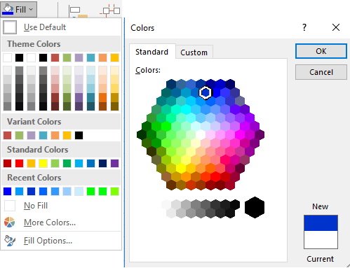 Shape Styles -> Fill -> More Colors… -> Colors -> Standard